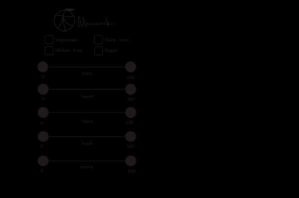 Menu Match is an interactive menu projector system that gives restaurant-goers the ability to filter and customize their menu. Using finger touches on a physical menu, users can check off dietary restrictions and adjust sliding scales for different flavor profiles (i.e. savory, salty, sweet, spicy, fresh), which will subsequently narrow down menu choices by highlighting them. These sliding scales can be adjusted to have minimum and maximum percentages of flavors.