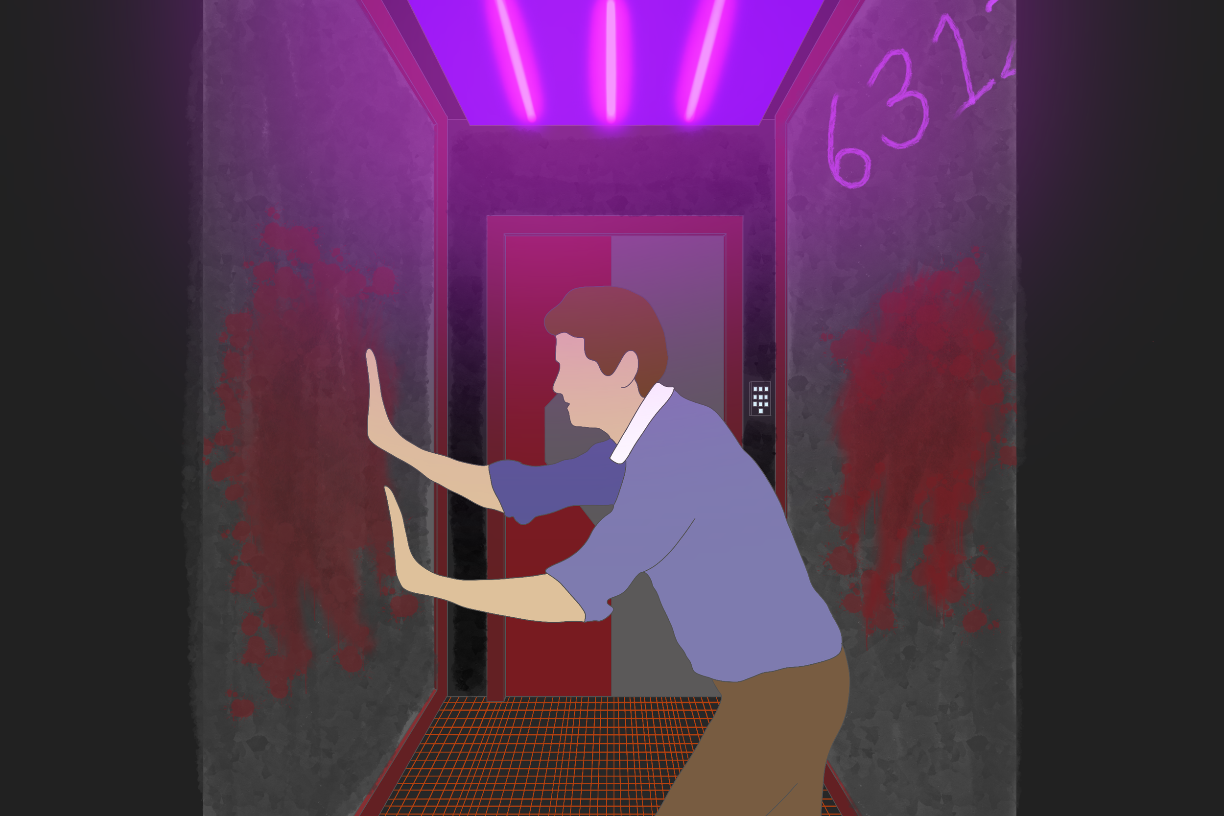Claustrophobia. You walk in and notice rusting walls with what seems to be bloodstains mirroring each other, but nothing happens. There is a key pad that as you attempt to press a number triggers the walls begin to close in on you. There is noting to do except wait… until UV lights flash on, a code on the wall. Put it in and escape from room 1.